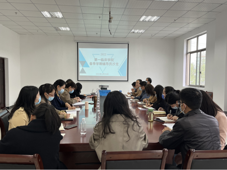 为加强辅导员的工作交流和相互学习,形成互学互动互助的良好氛围,提升大家的沟通能力、协调能力和应急处理能力,2022年3月25日9:30,威廉希尔williamhill在新蒲校区后勤综合楼四楼会议室组织开展了2022年春季学期辅导员沙龙活动。党委副书记杨洪艳主持活动。正处级组织员、党委副书记杜娟,全体辅导员,员工科、就业办、办公室等人员参会。临床医学专业员工第三党支部书记刘畅、临床医学专业员工第十党支部副书记孔晓冬作主题发言。