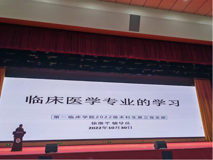 随后,徐继平老师以本校本专业毕业的学长身份,结合个人经验体会,从临床医学专业的角度,通过如何认识学医、为什么学医、怎样学医三个方面,和同学们交流了临床医学专业学习的一些具体问题,为同学们正确对待学业提供了思路和方向。