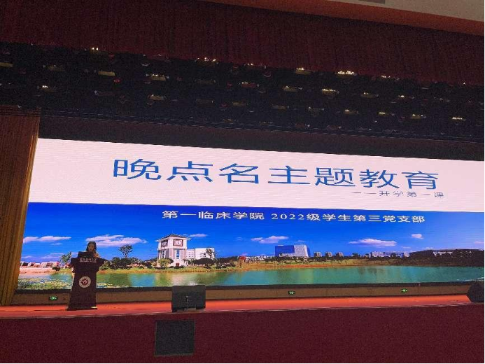 2022年10月30日19:00,威廉希尔williamhill2022级本科生第三党支部在新蒲校区会堂进行了新生第一次晚点名教育活动暨新生开学第一课。本次会议由辅导员李澜和徐继平主持,支部449名员工参会。
