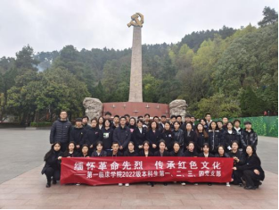 悼念革命先烈,传承革命精神。在红军山烈士陵园纪念碑下,全体人员肃立,由员工代表敬献花篮,集体默哀一分钟,用无声的悼念表达对革命先烈最崇高的敬意。随后,杨洪艳寄语同学们:“希望同学们学习先烈们顽强拼搏、艰苦奋斗、不怕牺牲的革命精神,深入学习领会贯彻党的二十大精神,全面提升自身素养,不忘初心,砥砺前行。并带领同学们缓步绕行,深情瞻仰了革命烈士纪念碑、邓平将军墓、红军坟,向革命烈士表达崇高敬意。最后,员工代表宋燃向大家讲述了卫生员小红的故事,把革命精神用故事的形式生动形象地展现在同学们面前,饱含深情,无不动容。