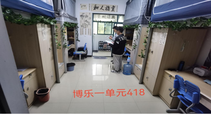 评比过程中,同学们热情迎检。每间宿舍内务干净整洁、寝室风气文明和谐,宿舍文化积极向上,寝室布置简约温馨,充分体现了老员工阳光向上的生活作风和锐意进取的生活态度。带队教师悉心与同学们交谈,了解同学们在生活、学习上存在的困难,希望同学们能够继续保持良好作风,丰富寝室文化,与室友和睦相处,互帮互助。同时,对于存在卫生条件脏乱差的宿舍,带队教师对该宿舍的同学进行了教育引导,勉励同学们作为老员工要时刻注意个人内务,给自己和他人营造一个舒适的居住、学习环境,同学们也表示会按要求整改。