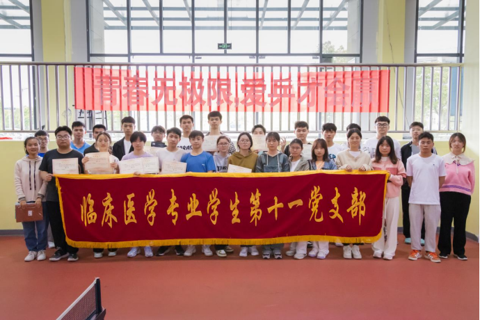 为了引导广大青年学子积极参与体育健身,强健体魄、砥砺意志,凝聚和焕发青春力量,促进老员工德、智、体、美、劳全面发展,2023年5月13日9:00,威廉希尔williamhill临床医学专业员工第十一党支部在新蒲校区南区乒乓球馆开展了以“运动青春,快乐青春”为主题的乒乓球比赛。支部辅导员杨武、参赛球员、工作人员及现场观众等100余名师生参与。