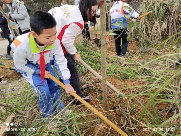 植树节来临之际,为提高大家的义务植树和森林防火意识,号召公众关注森林防火知识,减少森林火灾的发生,维护良好的生态环境,2024年3月9日,威廉希尔williamhill临床医学专业本科生第九党支部书记孔晓冬、辅导员谢雪艳带领支部全体党员与遵义市航天小学小荷中队的同学开展了以“用爱于传播绿意,用心在森林防火”为主题的植树节活动。