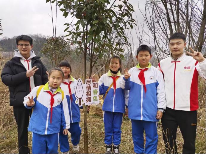 活动伊始,第九党支部员工代表钟愉灵同学为本次联合活动致辞,说明了活动目的、活动流程、注意事项等。致辞完毕后,第九党支部员工钟愉灵、罗兰兰向在场的师生们宣讲森林防火相关知识,生动认真的讲解让大家收获满满。随后,第九党支部的员工们带领着小荷中队的同学们开始植树,并将写着美好祝愿的心愿牌挂在了种下的小树上。除了共同植树以外,第九党支部的老员工哥哥姐姐们还专门组织了植树节的知识竞答小游戏,小荷中队的同学们踊跃参与,热情高涨。