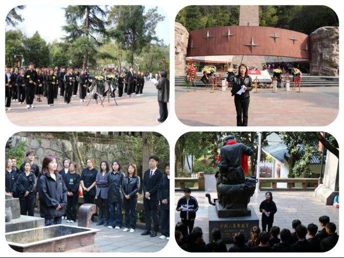 缅怀革命先烈,追寻革命精神。在红军烈士纪念碑下,全体师生整齐肃立。首先,由员工代表向烈士纪念碑敬献花篮,全体师生默哀一分钟,以表达对先烈们英勇牺牲的哀悼之情。默哀结束后,员工代表廖虹宇同学讲话,作为新时代的新青年,要牢记历史追忆先烈,以凌云壮志报效祖国。随后,在田源老师带领下,全体同学重温入团誓词,誓言铿锵有力,激励着同学们继承先烈遗志、发扬光荣传统的坚定决心。
