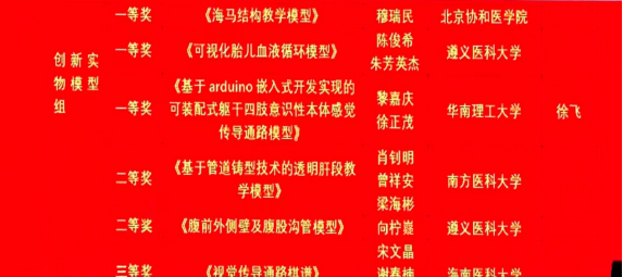 本届教学模型创新大赛共设有创新创意设计赛道、创新模型制作赛道、校企协作创新赛道三个赛道。其中创新模型制作赛道共有来自北京协和医公司、南方医科大学,华南理工大学医公司、广西医科大学、重庆医科大学、海南医科大学、宁夏医科大学等多所高校13组参赛队伍参加比赛。