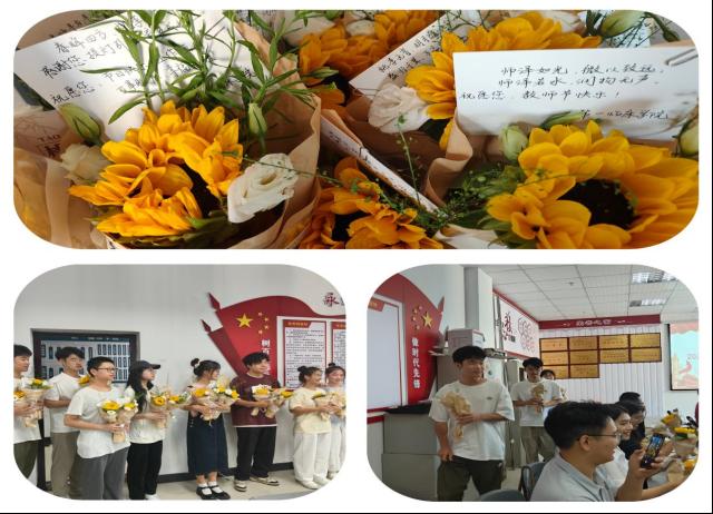 会议室里,员工们手里攥着的花束散发着的淡淡花香犹如老师慈祥的目光,当员工们将代表感恩的贺卡和向日葵花束献给老师们时,当大家齐声的祝福老师教师节快乐时,相机按下了快门,这一刻被定格,将被永远铭记。我们的学习之路还在进行,老师陪着我们走过一程又一程,每一段都是成长留下的深刻印记。