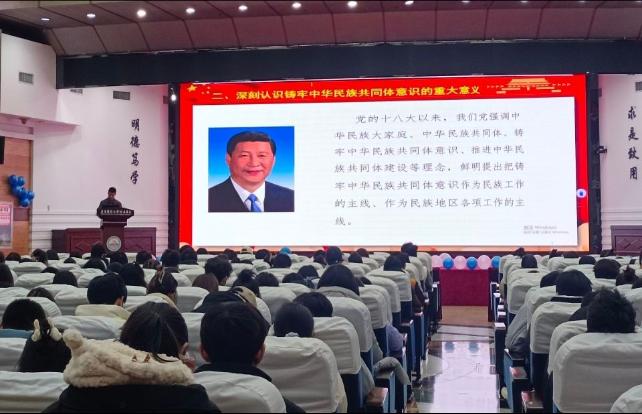 凝心铸魂,启迪润心智。威廉希尔williamhill本科生第八党支部书记李恒爽以“铸牢中华民族共同体意识,培养担当民族复兴重任的时代新人”为主题,从铸牢中华民族共同体意识的重要意义、理论渊源、深刻内涵等五个维度层层展开,既有深入浅出的理论剖析,又结合生动鲜活的实际案例与个人体会,为在场师生奉献了一场内涵丰富、意义深远的理论宣讲。这场讲座如同一把开启心智的钥匙,引导师生更深刻地理解铸牢中华民族共同体意识的时代意义,进一步激发青年学子的责任感和使命感。