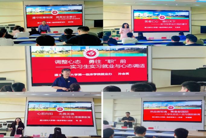 6月5日至6月6日,就业办主任孙会英、员工科科长姚华敏率辅导员孔晓冬、韦丽、林章鹏赴浙江省人民医院毕节医院走访看望实习生。走访团围绕医疗职业行为规范、常见安全问题、职业规划、心理调适技巧、应征入伍政策与国防教育等开展集中宣讲。同时,走访实习生宿舍查看住宿设施、卫生条件及安全状况,并认真听取同学们关于住宿环境、生活便利性等方面的优化建议。走访团还深入住院病房,参与科室教学查房,与带教老师交流,了解员工实习状态,现场指导员工病历书写及医患沟通技能。