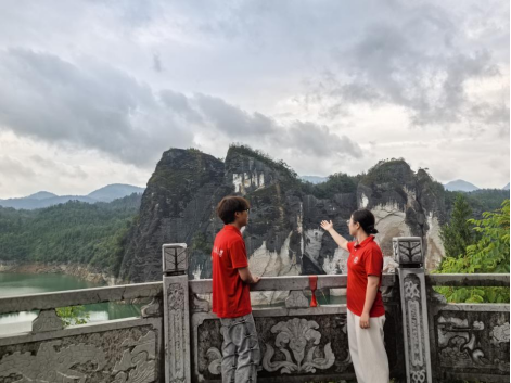 循着仡佬文化的历史脉络,实践团队踏上寻根之旅。在九天母石景区,队员们驻足祭祖圣地天主坳观望仡佬族发源地九天母石,于形态各异的母石群与古朴祭坛间,追溯其与“濮人”始祖传说的千年羁绊;通过与当地文化工作者、仡佬族乡亲促膝交流,收集关于九天母石的民间故事、变迁记忆,深深感受到这片土地在民族身份认同中的精神价值。走进中国仡佬民族文化博物馆,队员们在丹砂文化展厅细品文物风华,从铜扁壶纹饰到传统服饰巧思中梳理古今文脉,更合力解读“三幺台”、傩戏等民俗密码,在探索中让民族根脉愈发鲜活闪亮。
