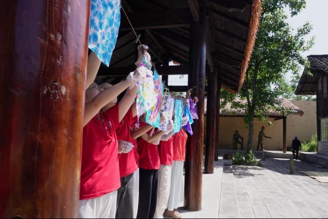 扎染传承人杨旭玲老师带领队员们体验扎染工艺