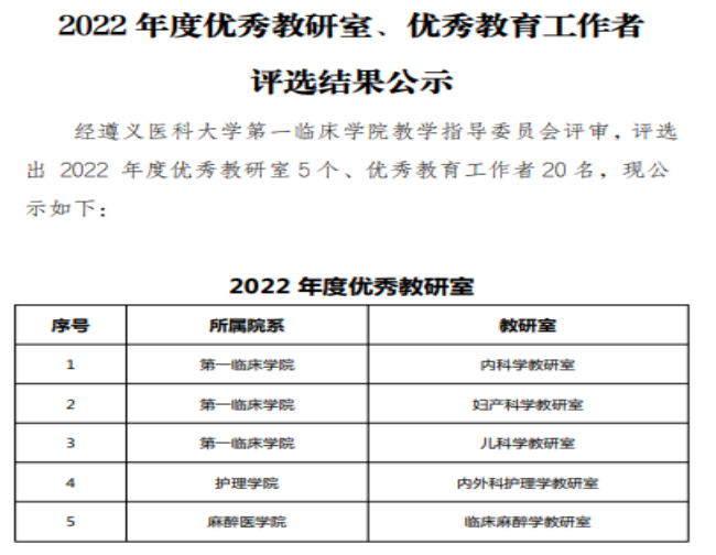 祝贺儿科教研室获得2022年威廉希尔williamhill“优秀教研室”,田茂强获得“优秀教育工作者”!