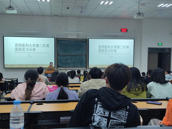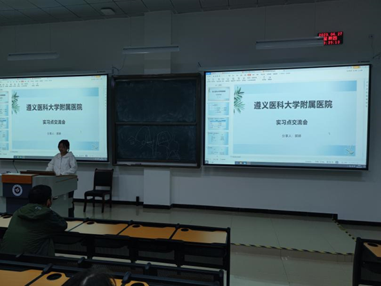 随后,2019级各实习点组长详细地向2020级同学们分享了各自实习医院的团队、科室轮转、实际操作、住宿等具体情况,分享自己的实习感受与收获。分享结束,2019级各实习点组长与2020级同学之间进行实习情况交流.