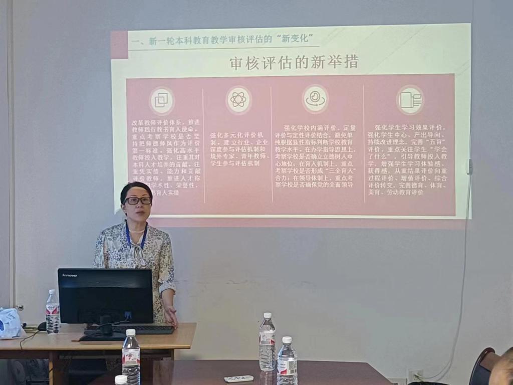 在会上,王东红副经理宣讲了“教学管理下基层”的活动组成,详细解读了本科教学评估工作,并就新一轮本科教学评估指标体系、团队建设和教师发展培训等方面提出了一系列建议,对我教研室的发展起到了积极的推动作用。在座谈会上,王东红副经理与我教研室老师进行深入探讨,使全体教师对即将开展的迎评工作有了统一的认识及如何开展好工作有了更深入的理解。