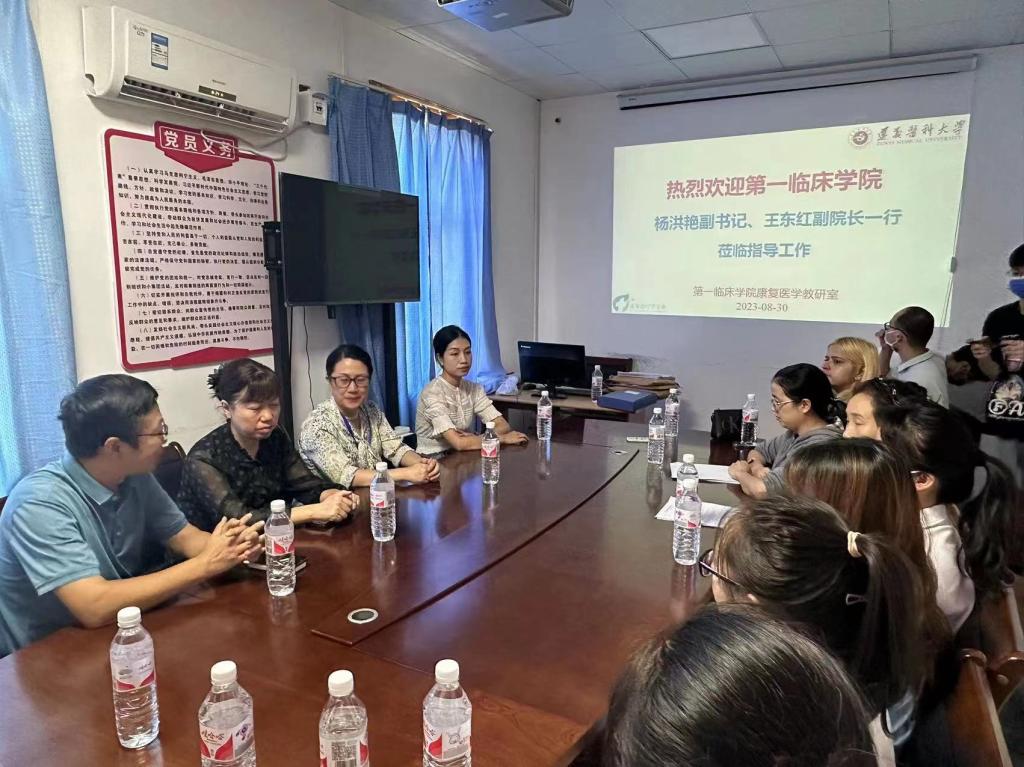 为了迎接教育部2023年度对公司的本科教学评估及不断提高康复治疗学专业本科教学质量,威廉希尔williamhill杨洪艳副书记、王东红副经理一行于8月30日下午莅临康复医学教研室进行教学管理下基层活动。此次指导工作使我教研室的教学质量的提升,教师迎评思想的统一带来了极大帮助。康复医学教研室熊伟主任、毛万姮副主任以及康复医学教研室全体教师和实习生代表参加了此次活动。